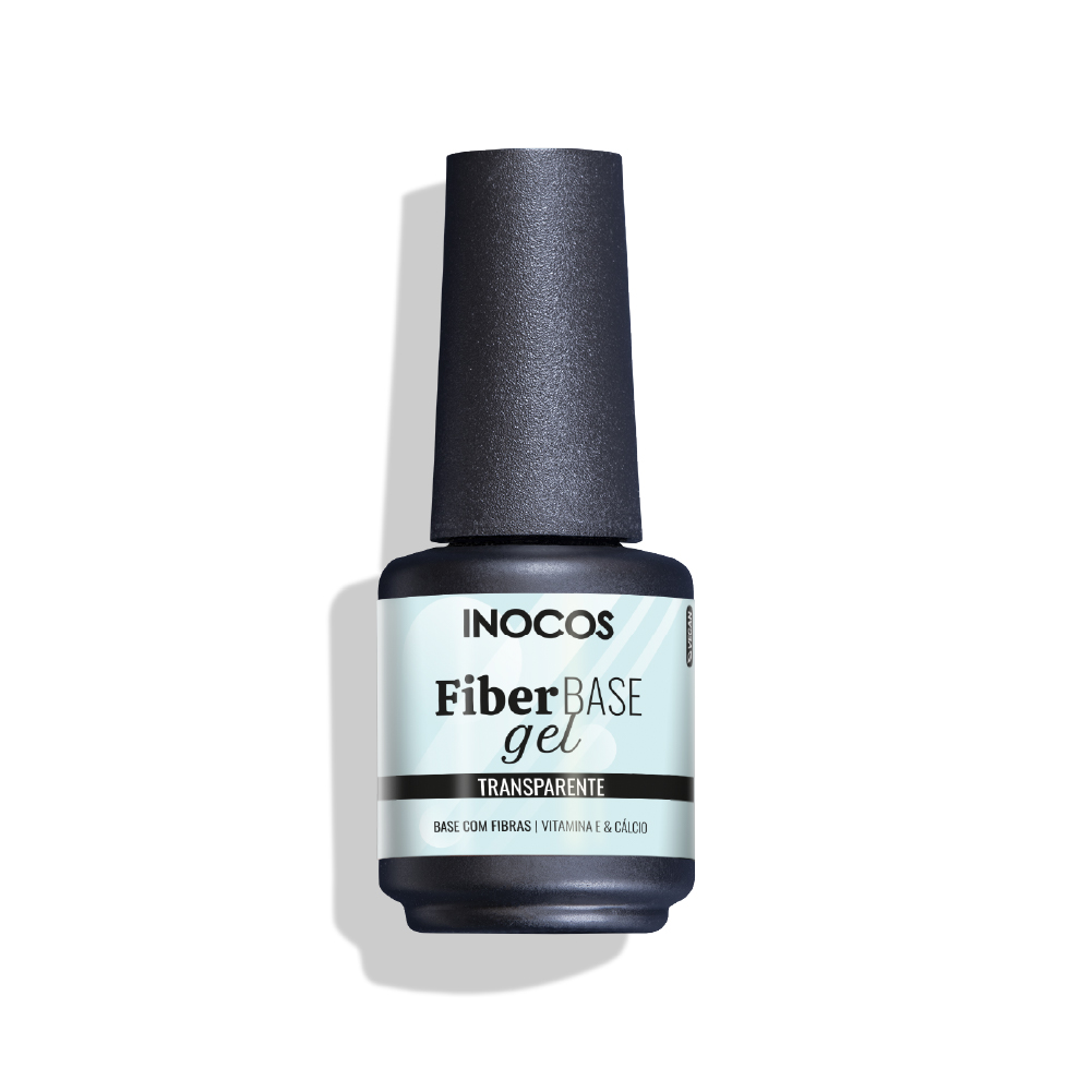 Verniz para unhas FiberBASE gel da INOCOS em garrafa preta