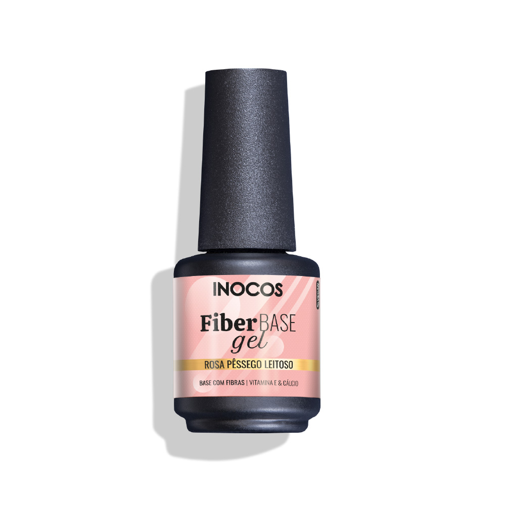 Frasco de verniz gel Fiber BASE gel INOCOS cor Rosa Panacotta Leitosa