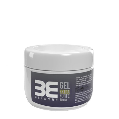 Frasco de gel forte Belcorf de 500 ml com rótulo cinza e branco