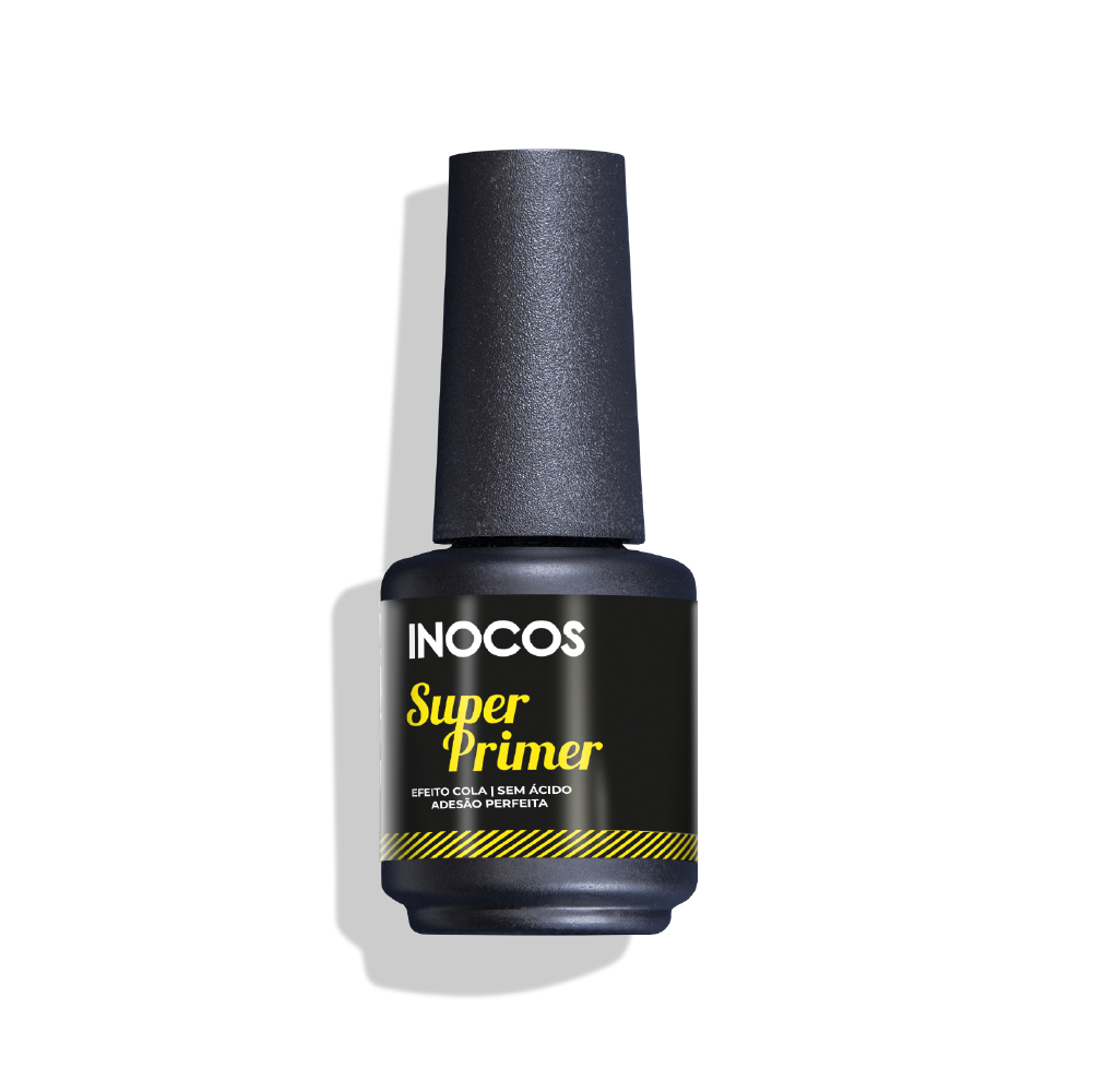 Frasco preto de verniz INOCOS Super Primer com tampa preta fosca